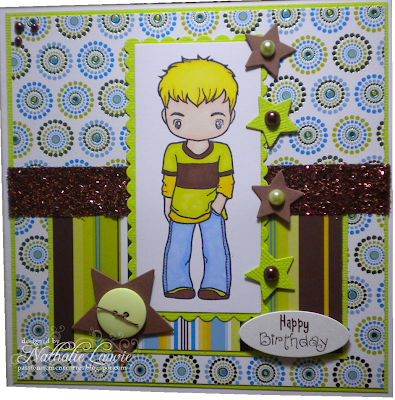 et oui me revoici. C'est les vacances !!!!! Je vais pouvoir scraper comme une petite folle. Aujourd'hui, je publie pour Sunday Sketch and Stamp. C'est une carte d'anniversaire pour un ami. Vous le savez déjà, le salon Version Scrap vient de fermer ses portes. Bien sûr, j'y ai été faire un tour, et j'ai plein de nouveautées. En voici un échantillon : regardez les papiers, c'est une vrai tuerie!!! achetés bien sûr au Paradis du scrap.