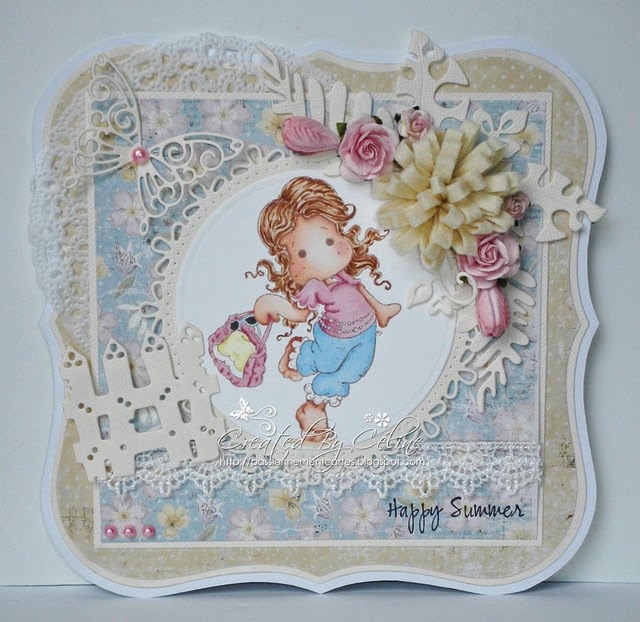 Beautiful card Celine..such a sweet Tilda and wonderful colouring.Love the pastel shades and gorgeous flowers...very pretty.